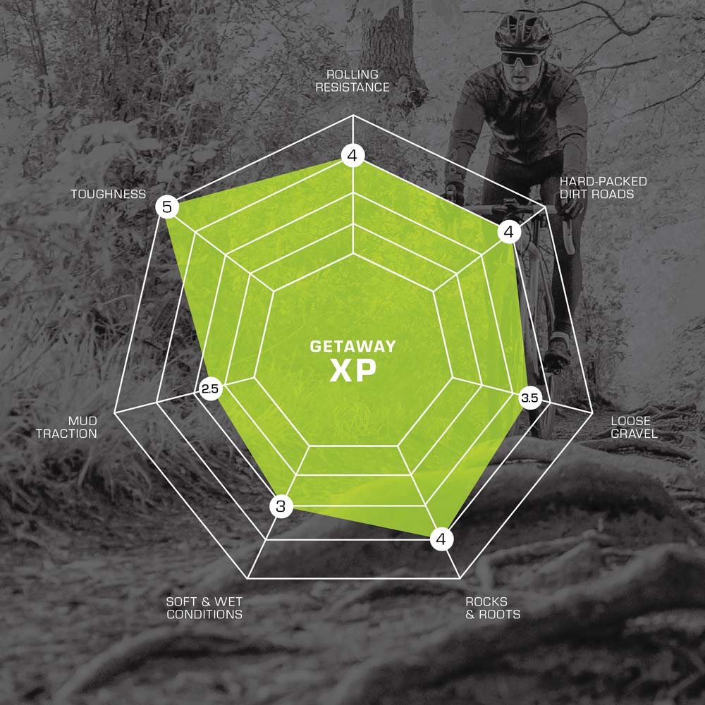 WHEN IT'S PERFECT – Getaway XP is the answer when you would select Getaway but aim to run lower pressures or ride sections of rougher terrain or sharp gravel. If your style is more “set and forget” you’ll love that you can mount Getaway XP for the whole season and not worry about hidden embedded rocks or surprise ruts in fast descents.